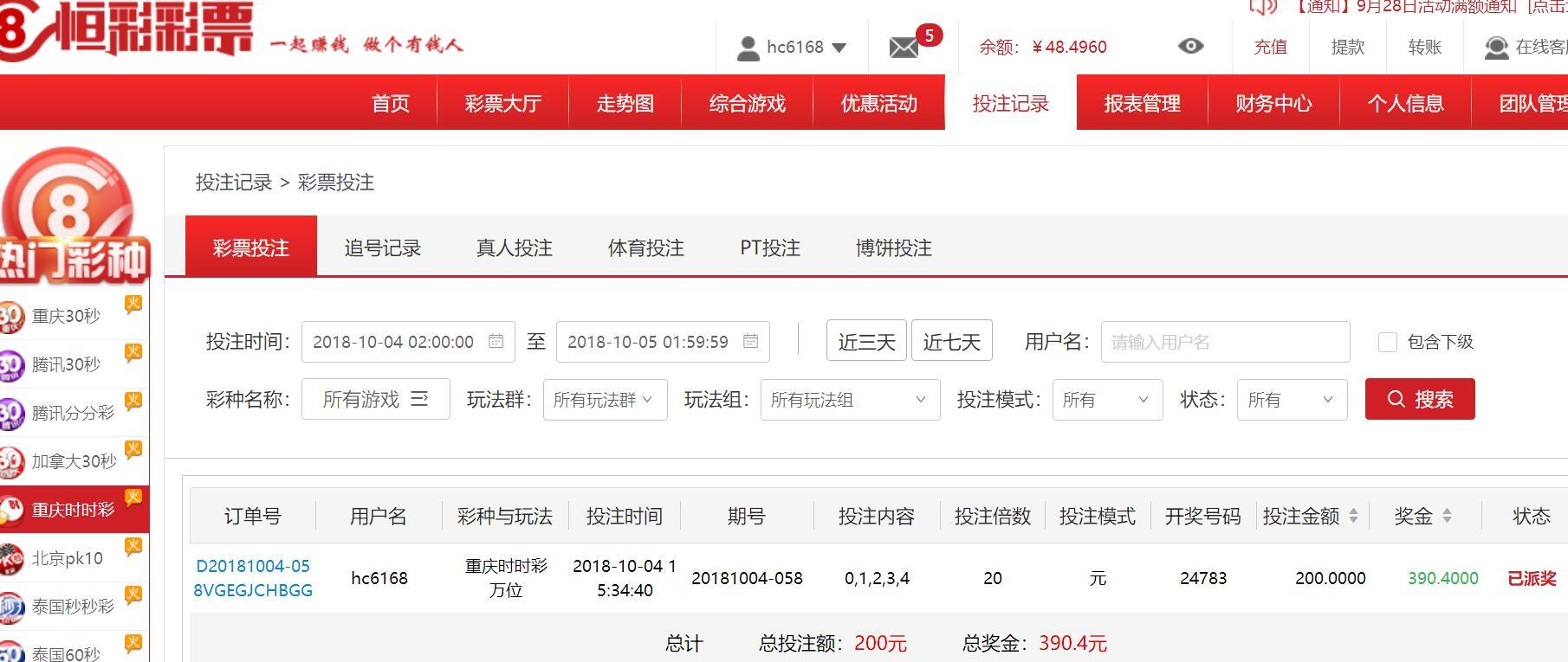 [|赢单奖励] 10月4日恒彩赢利190元 |