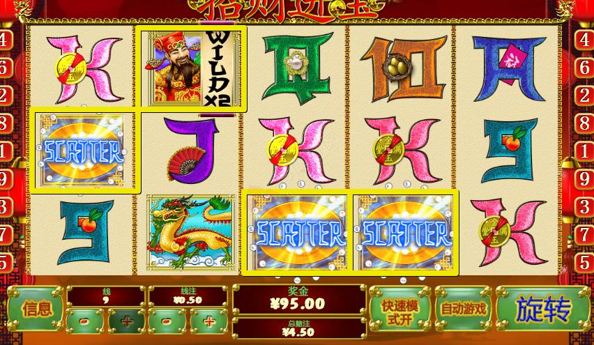 [|老虎机实战] 今天的招财进宝实在是太给力了,连中4元宝! |