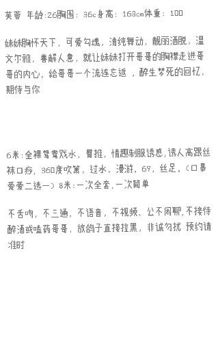 [xinxitop]提示信息[/xinxitop] 【寻欢时间】:2020年 【寻欢地点】:乌市沙依巴克区 【信息来源】:狼友推荐、 【服务项目】:鸳鸯浴,漫游,胸推,69式,口活,爱爱、(可选,勿必填写真实服务项目) 【环境设备】:85 【营业时间】:19:30之前 【价格一览】:600/次或等 【安全评估】:评分,满分85 【服务星级】:★★★★(最高5星)应适当评价质量 【联系方式】:[unfree](请将联系方式留于此处,如微信:mengqi5555555,联络暗号:相见恨晚)[/unfree] 【附带照片】: