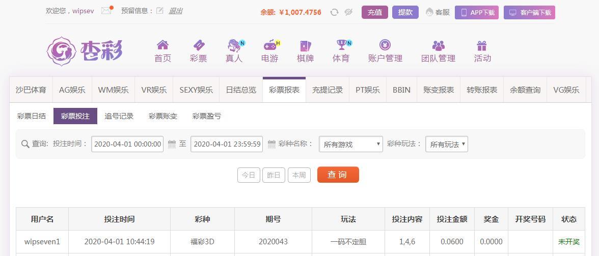 今天投注的福彩3D彩票