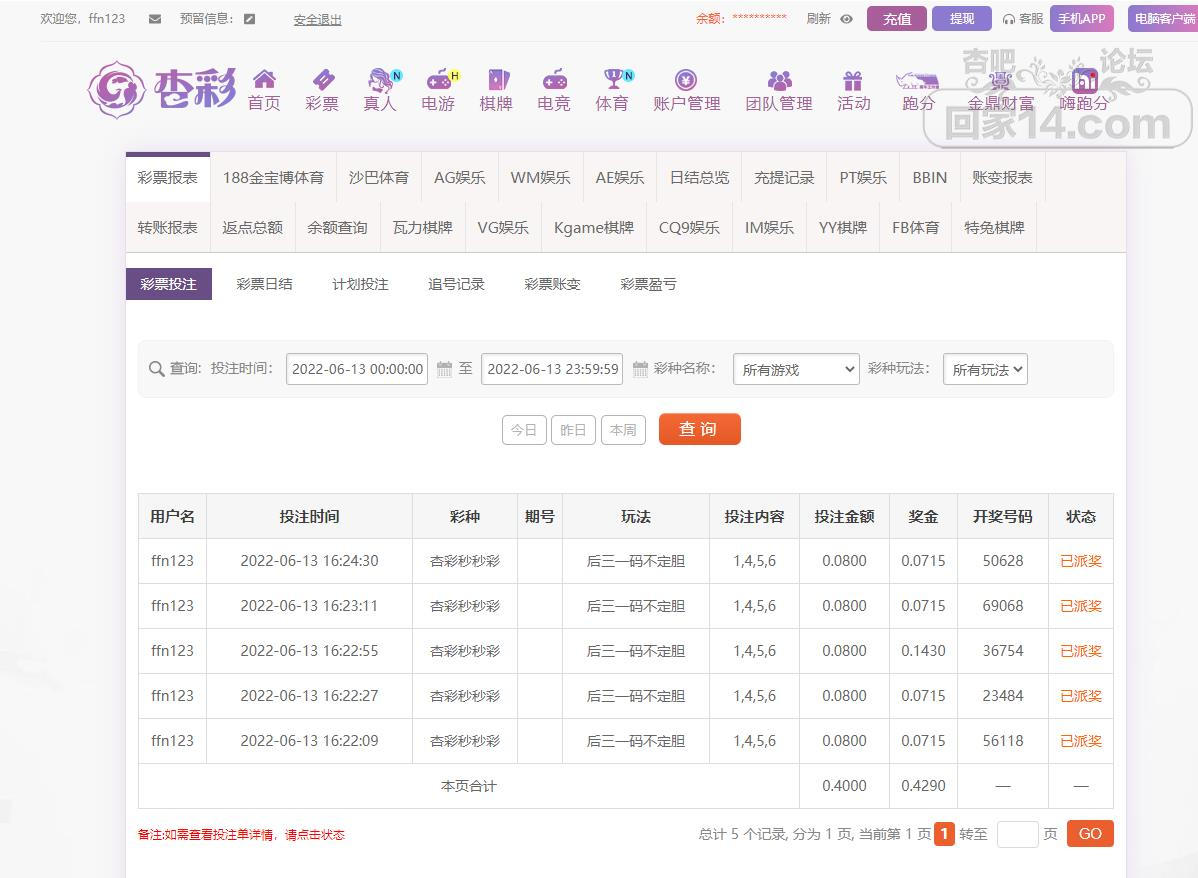 6-13杏彩秒秒彩运气挺不错