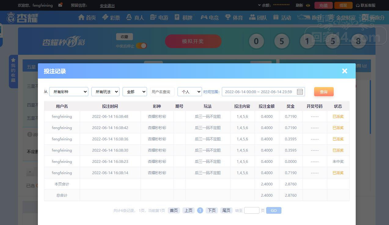 6-14杏耀秒秒彩运气挺不错