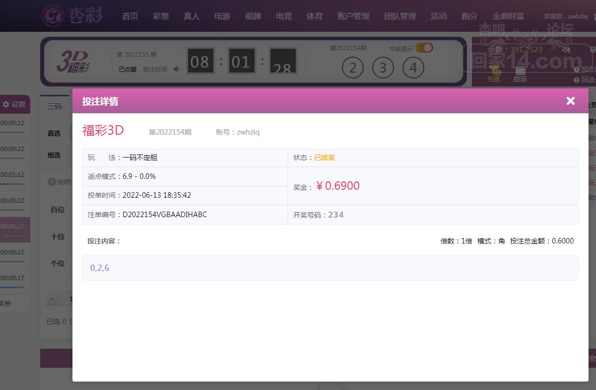 福彩3D中1个号码