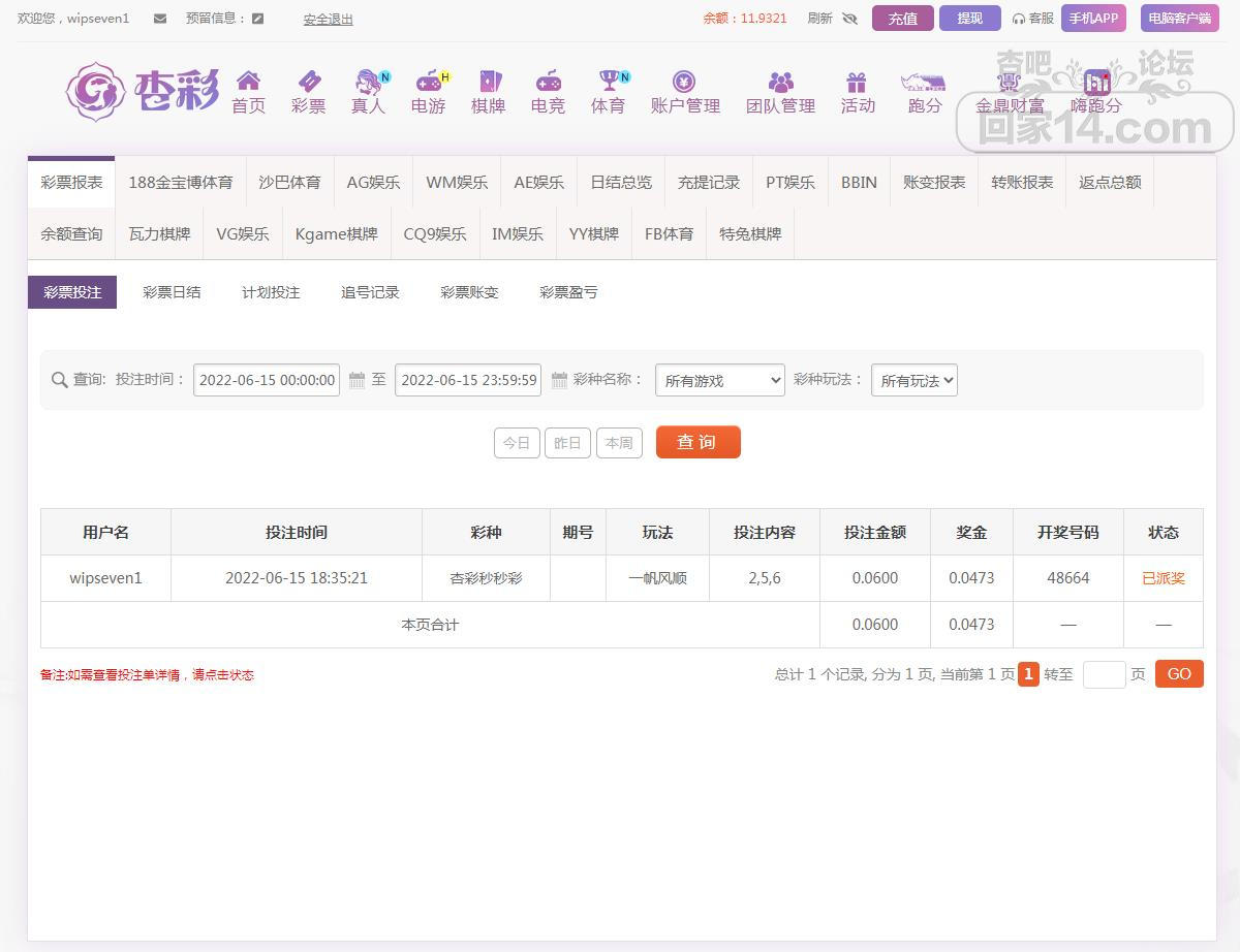 杏彩下注快频彩游戏赢单