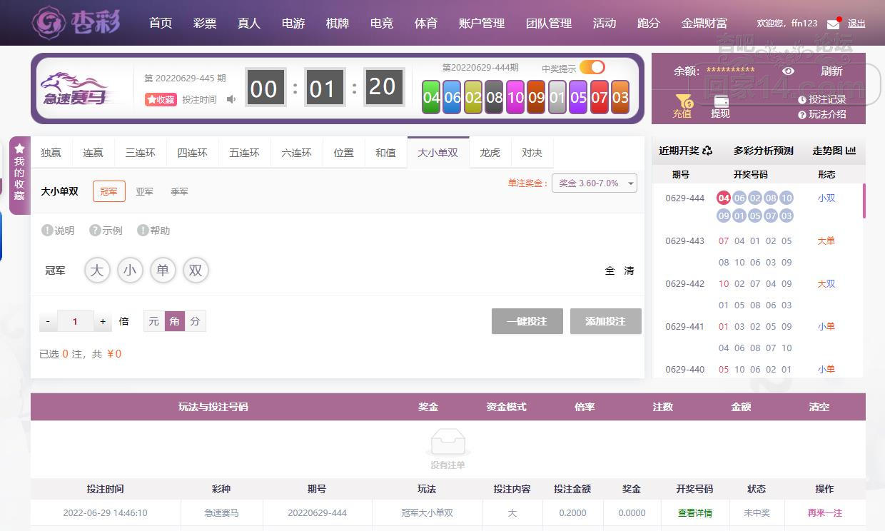 6-29杏彩急速赛马输了点