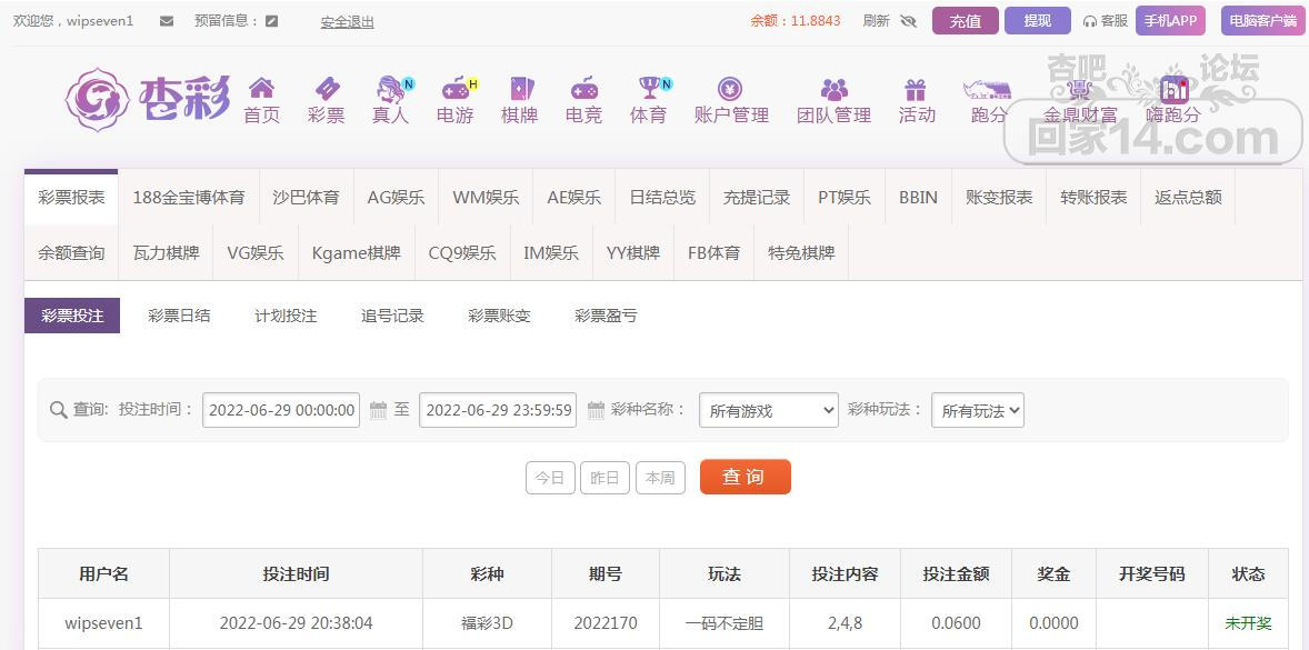 杏彩下注福彩3D游戏