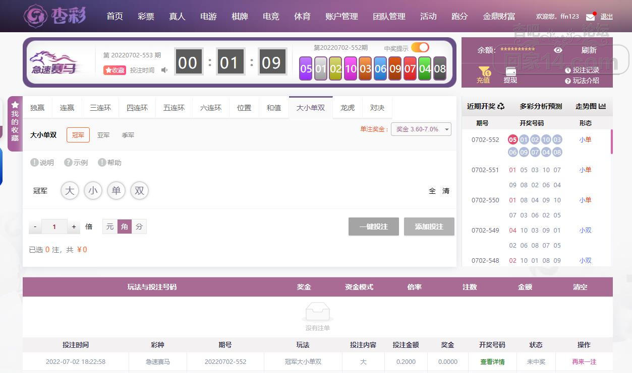 7-2杏彩急速赛马输了点