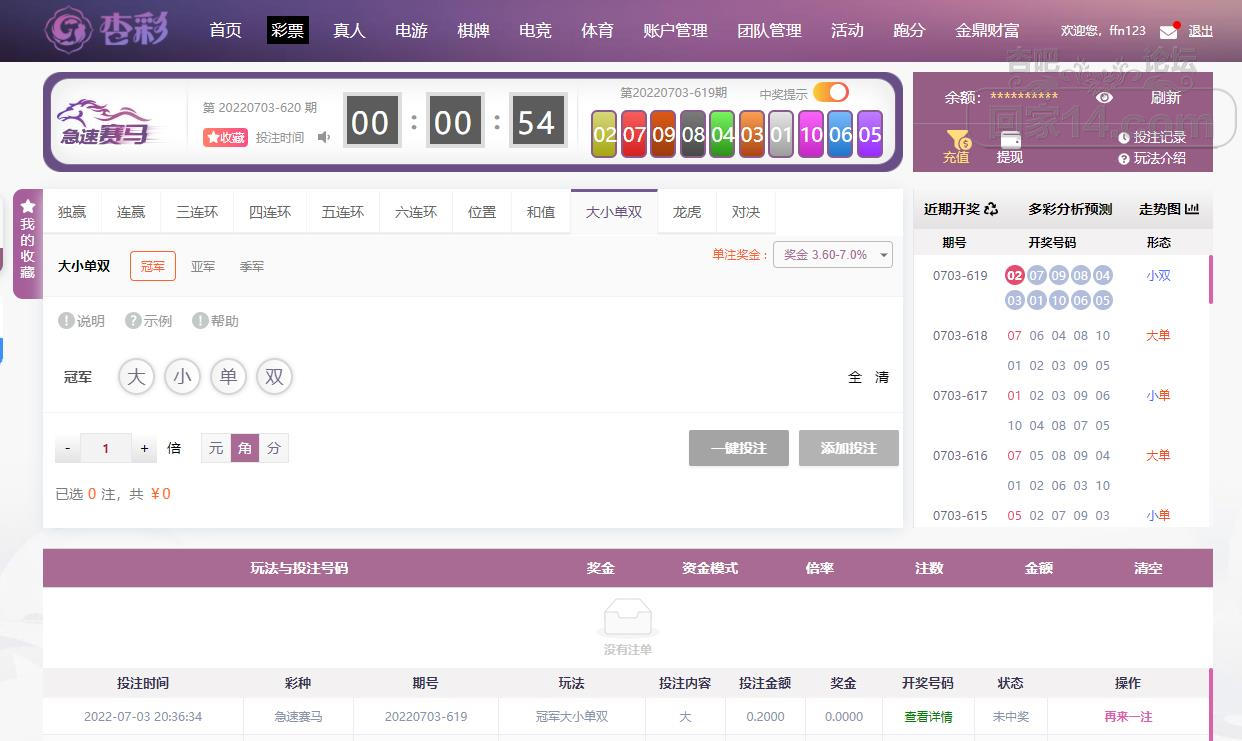 7-3杏彩急速赛马输了点