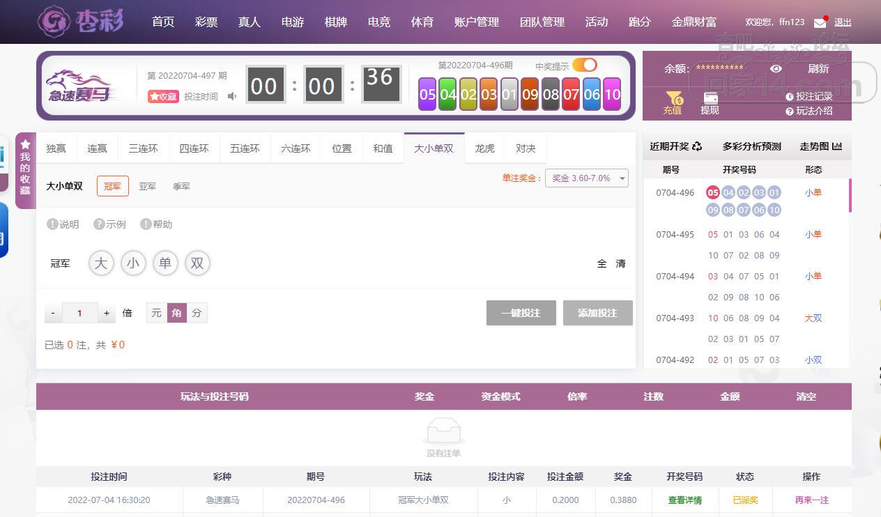 7-4杏彩急速赛马小赢了点