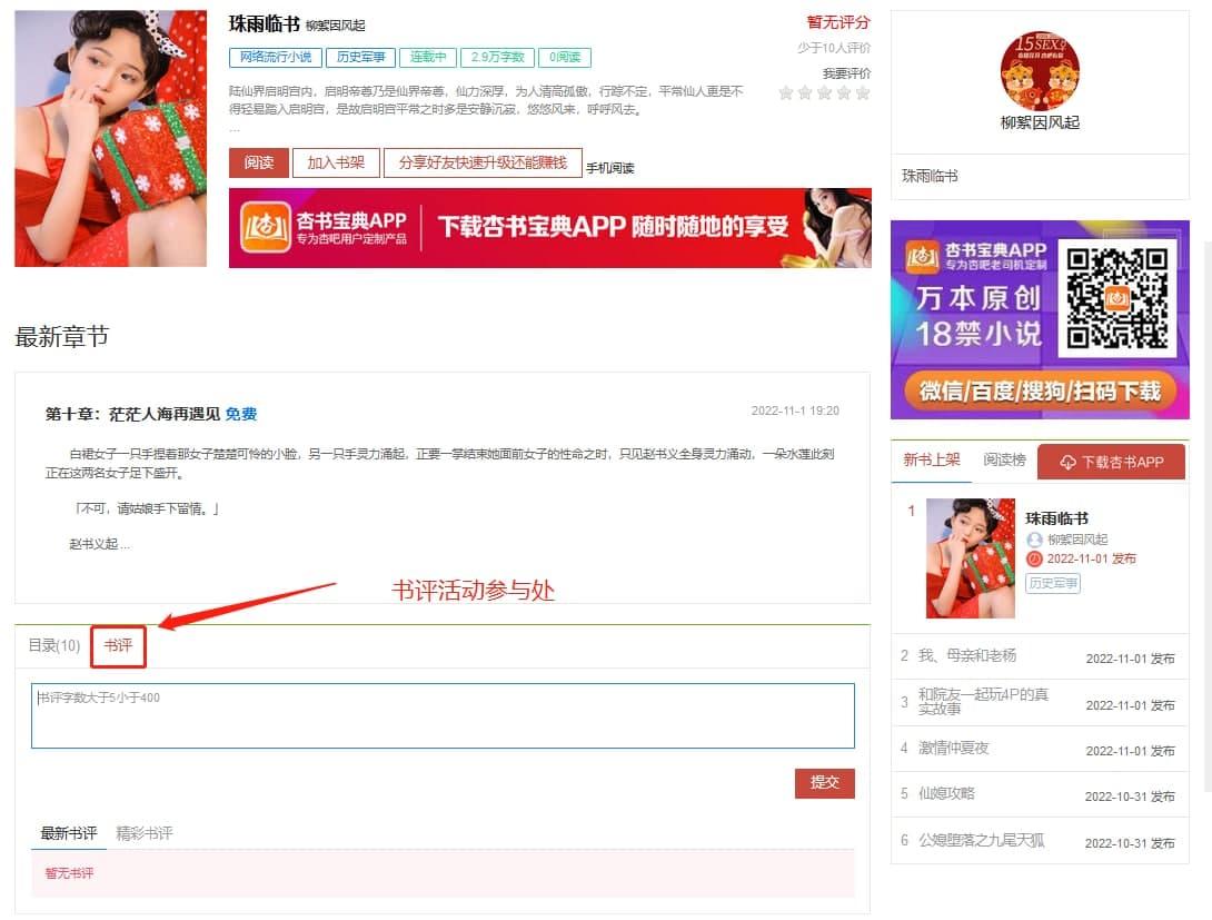 [互动交流] [书吧活动]好书限免分享 第36期《珠雨临书》2022年11月26日 更新至 第121章:真的大结局了 |