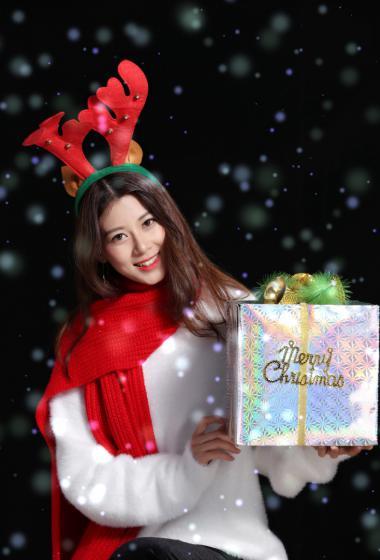 [明星写真] 美女赵昭仪圣诞节白色毛衣装红色鹿角头饰甜美【10P】 |