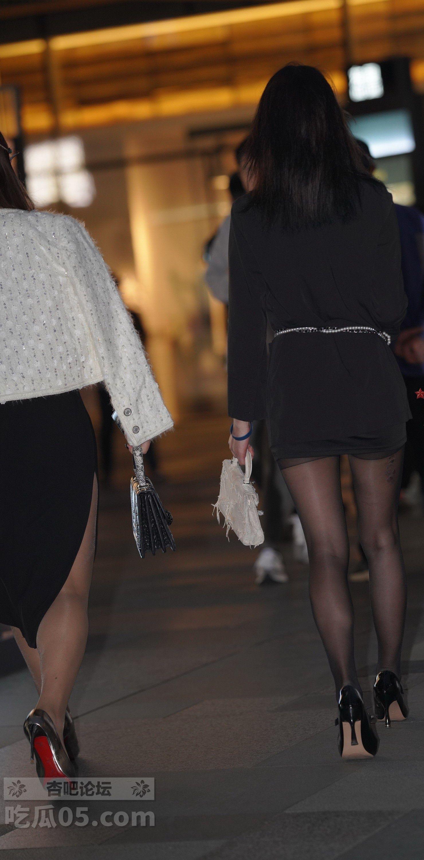 黑色西服短裙黑丝袜口罩美女下班回家路上玩手机【10P】
