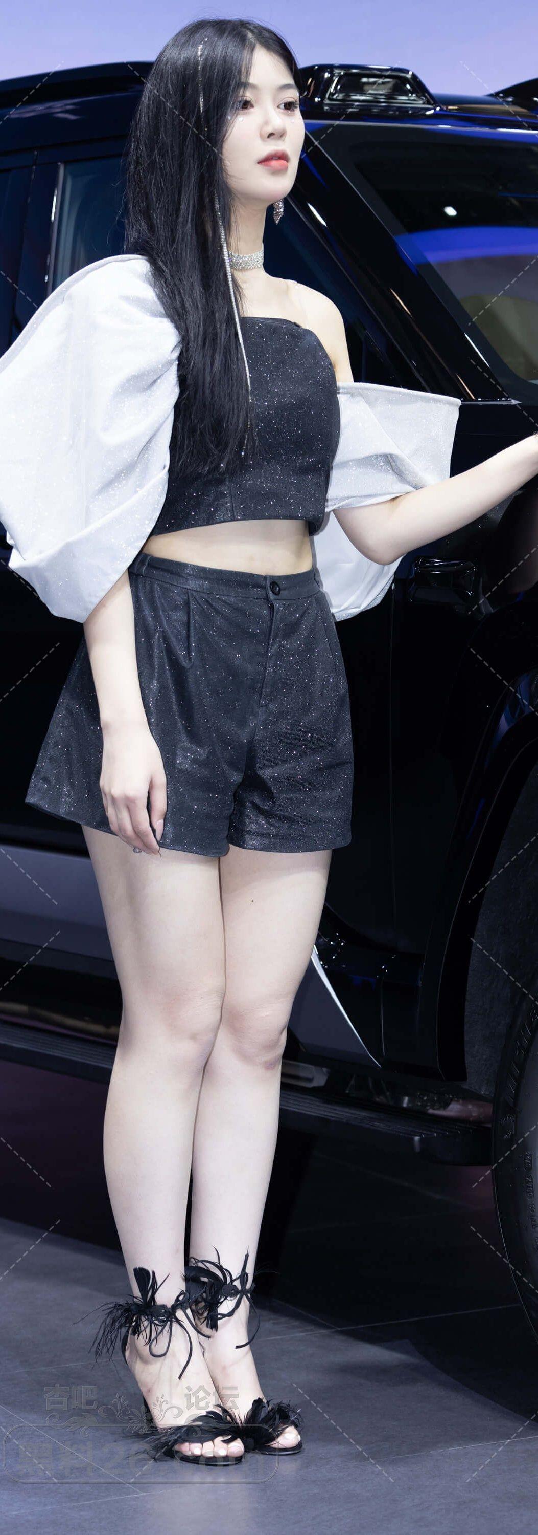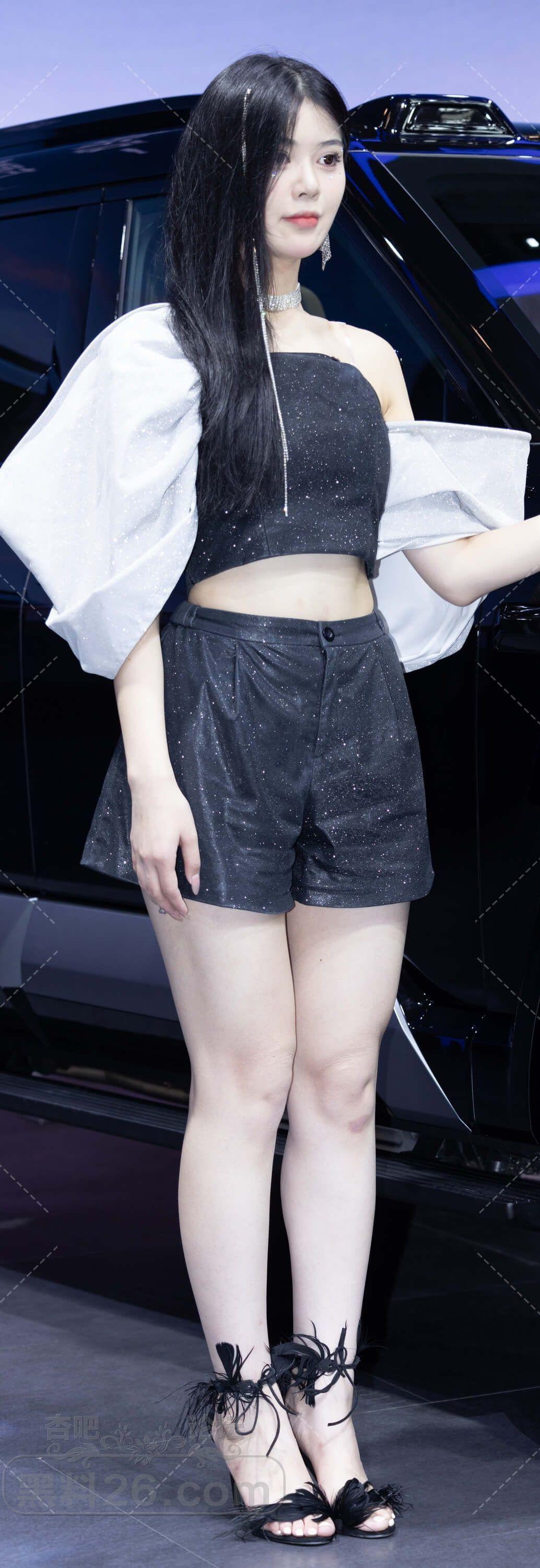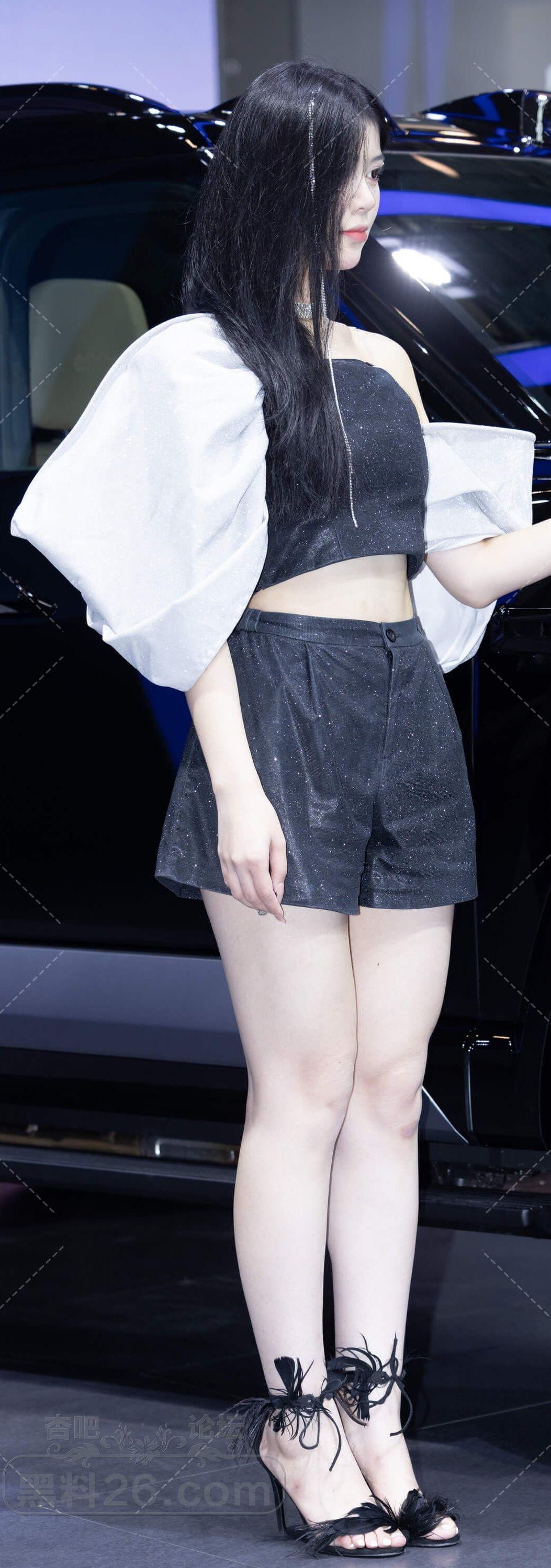 黑色抹胸短裤高跟凉鞋美女车模一双美腿白皙【10P】