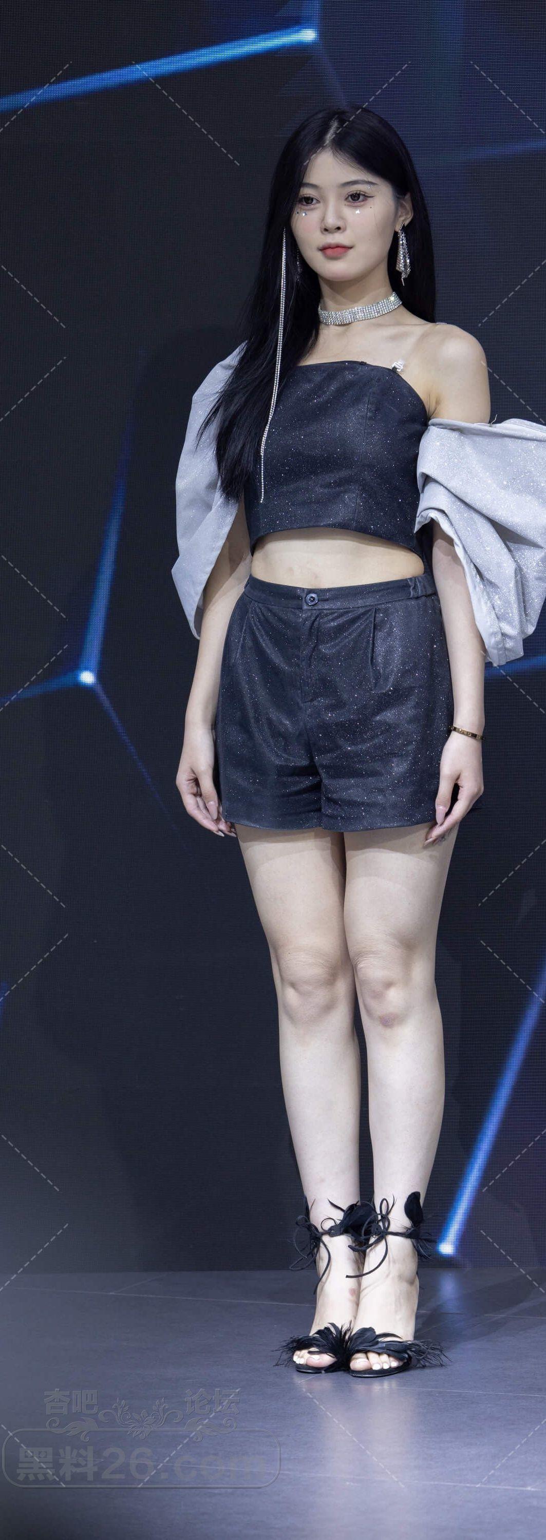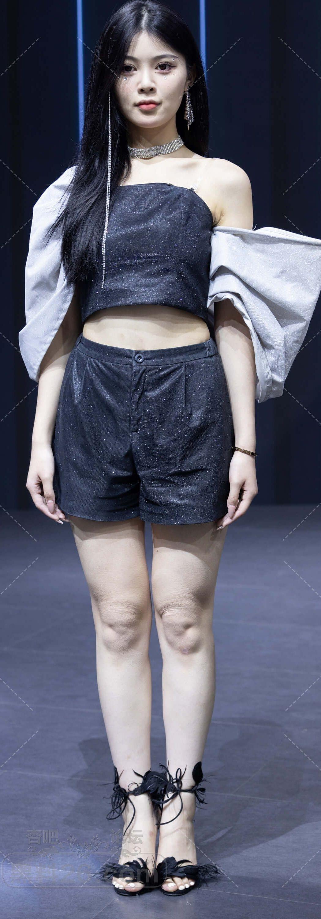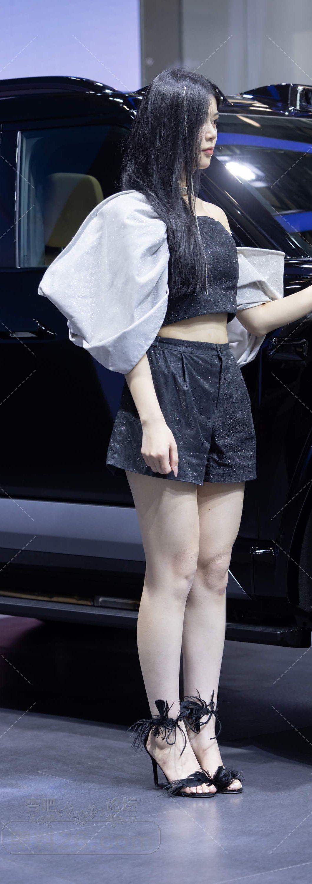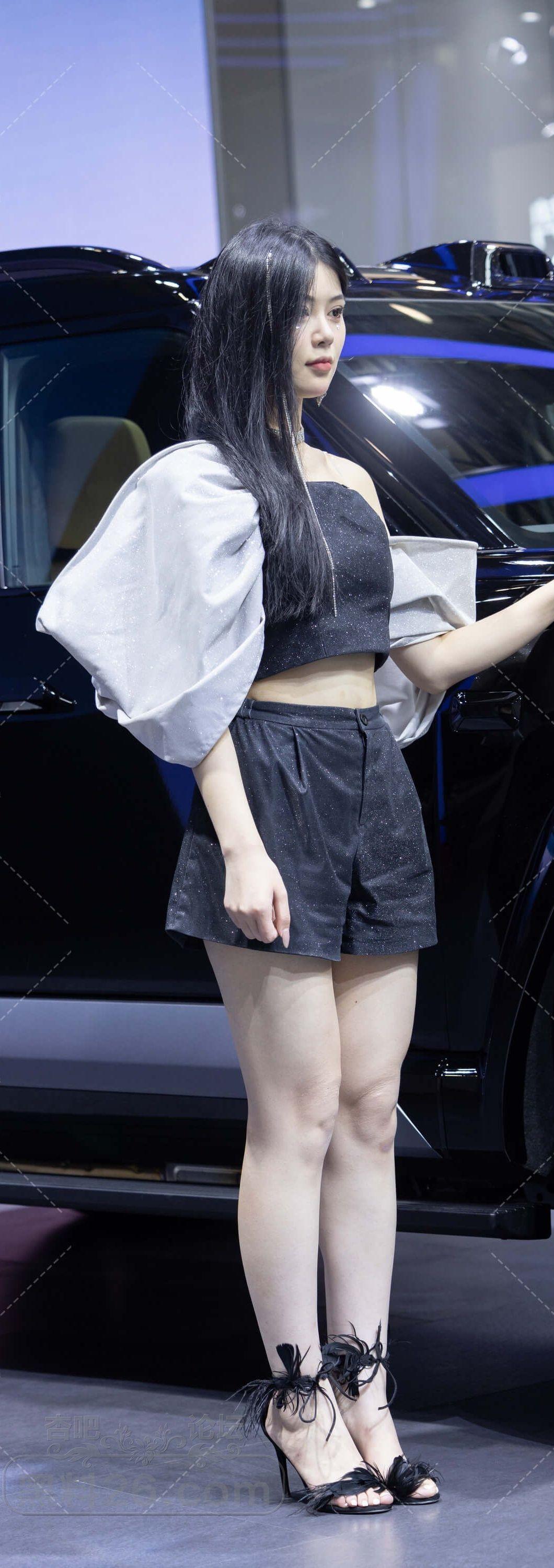 黑色抹胸短裤高跟凉鞋美女车模一双美腿白皙【10P】
