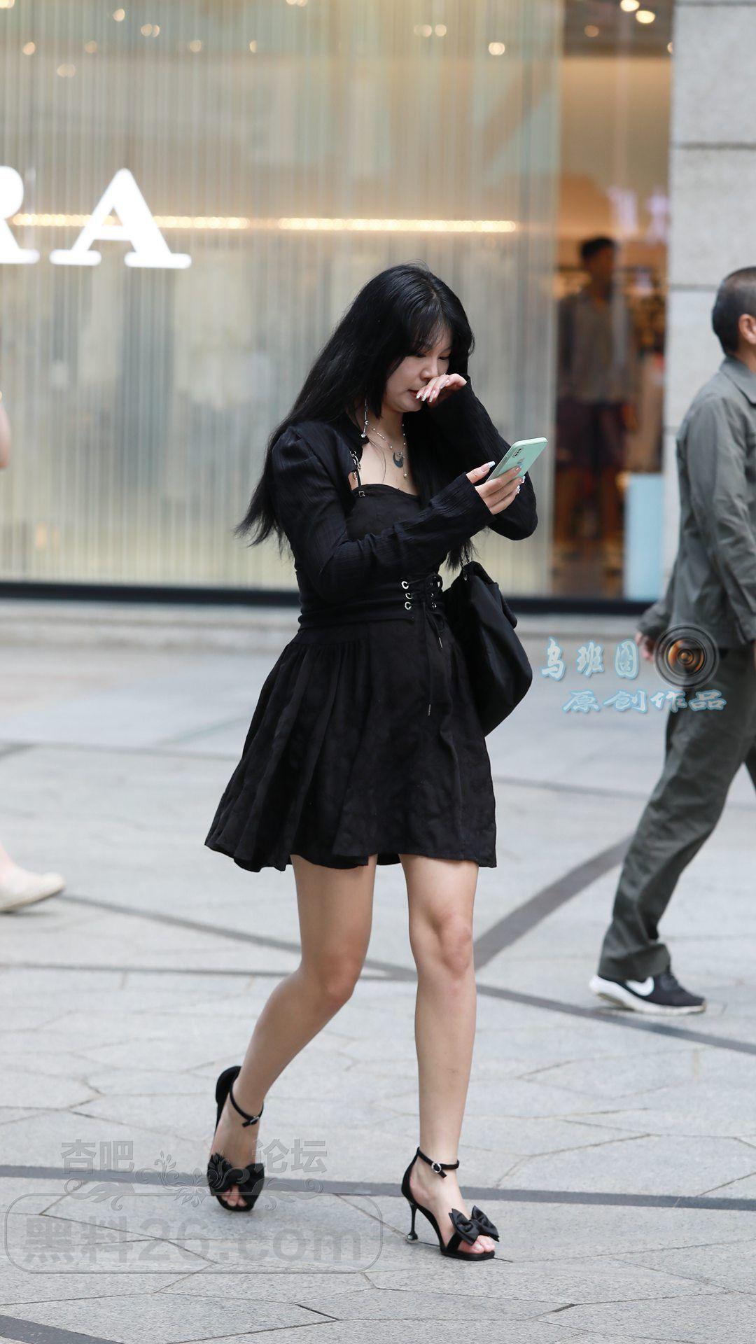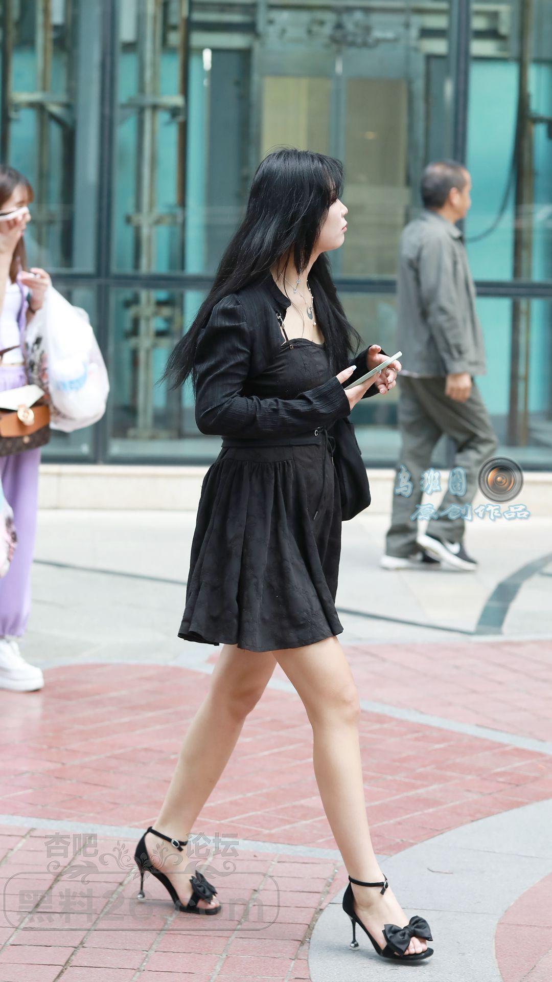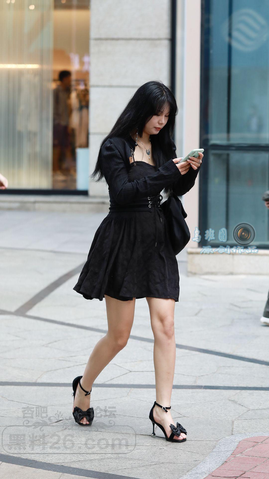 [街拍] 黑色连衣裙+黑色一字带细跟凉鞋,黑色系穿搭更显高显瘦,性感又神秘【14P】 |