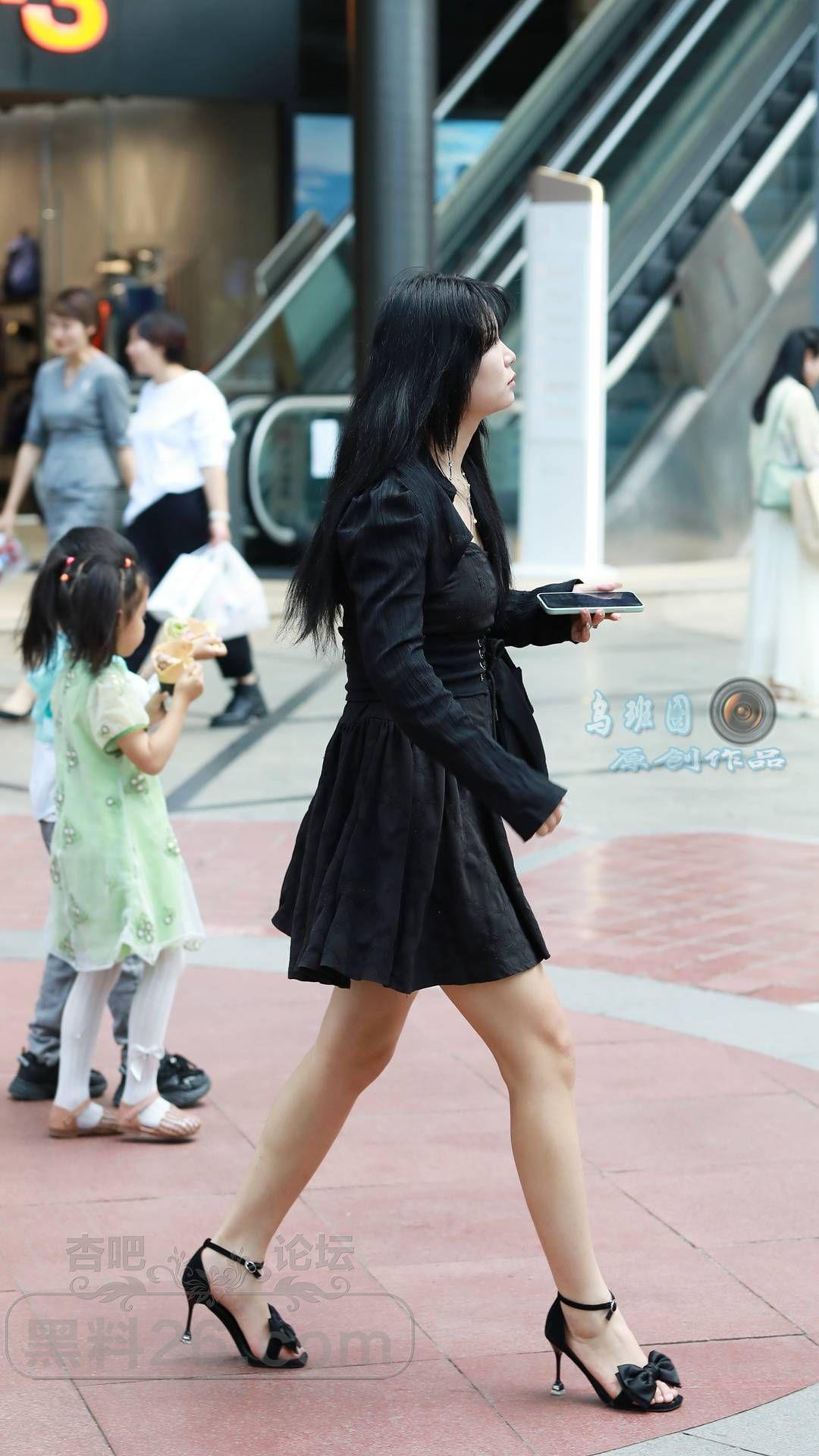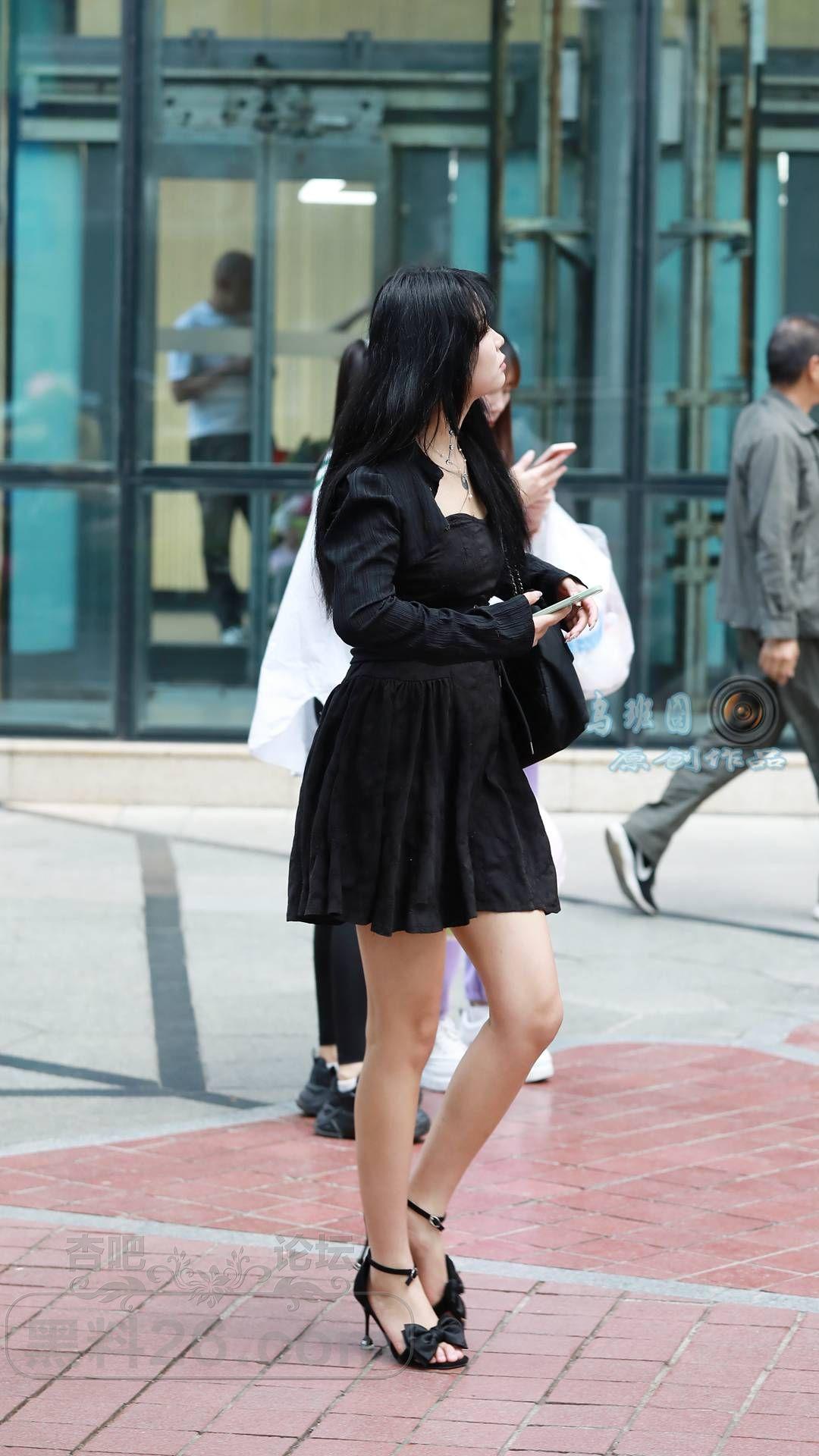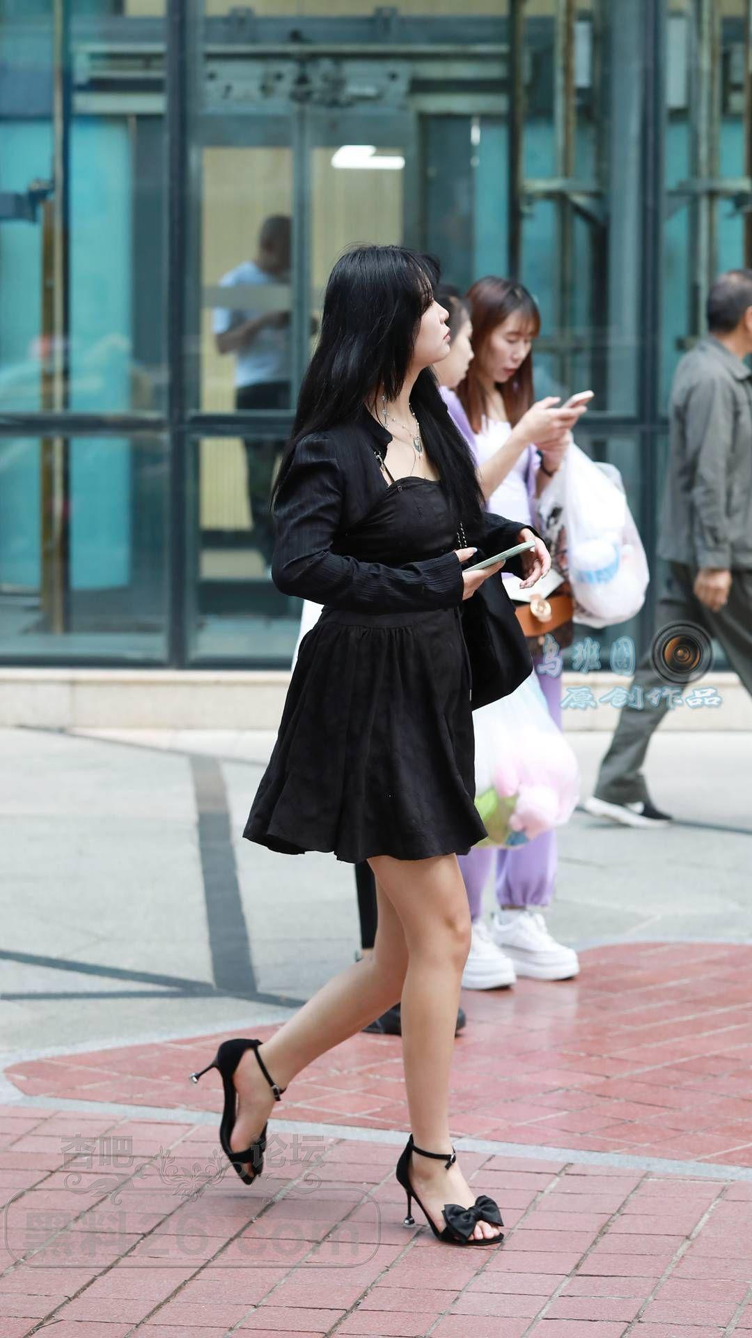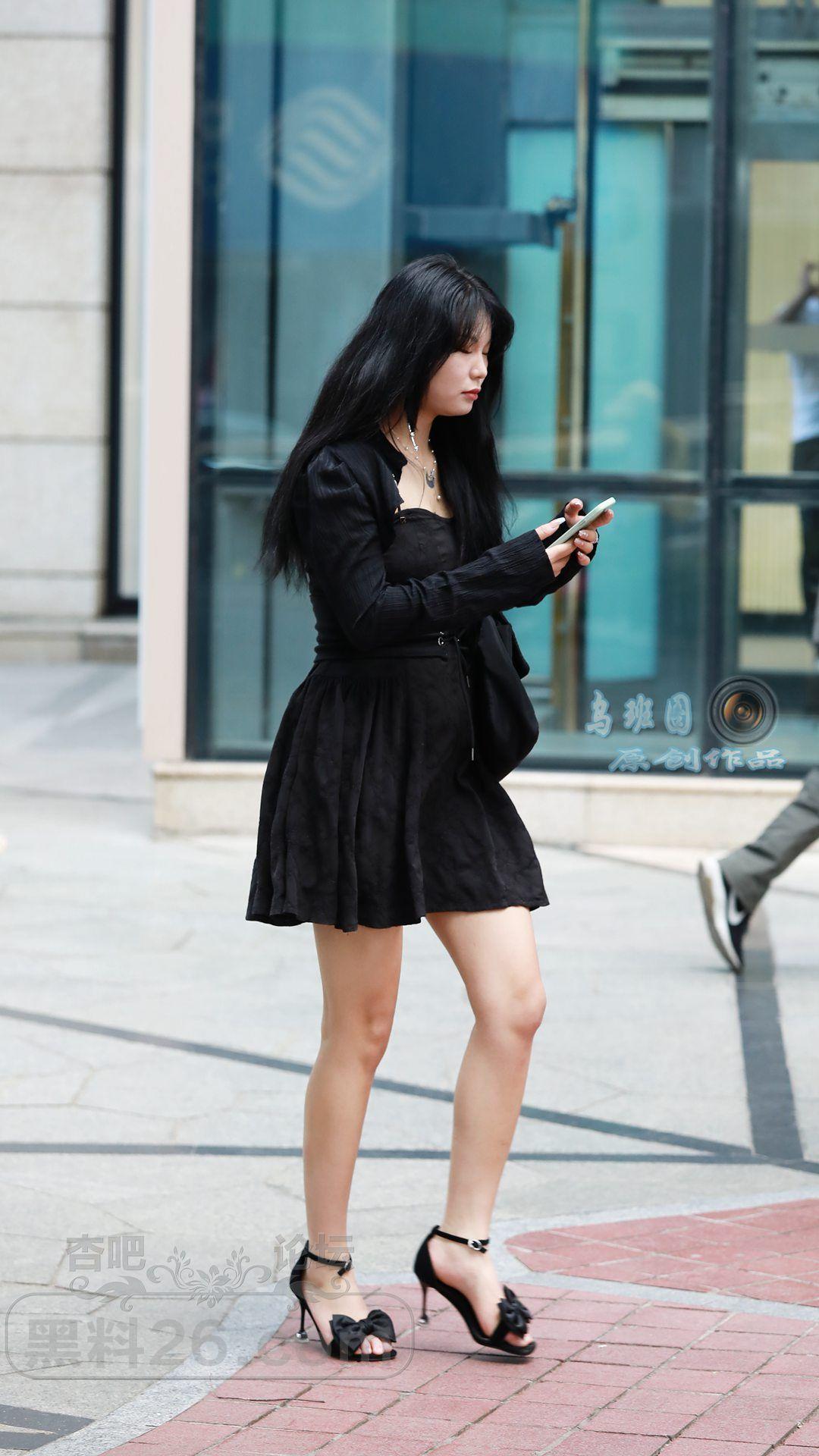 [街拍] 黑色连衣裙+黑色一字带细跟凉鞋,黑色系穿搭更显高显瘦,性感又神秘【14P】 |