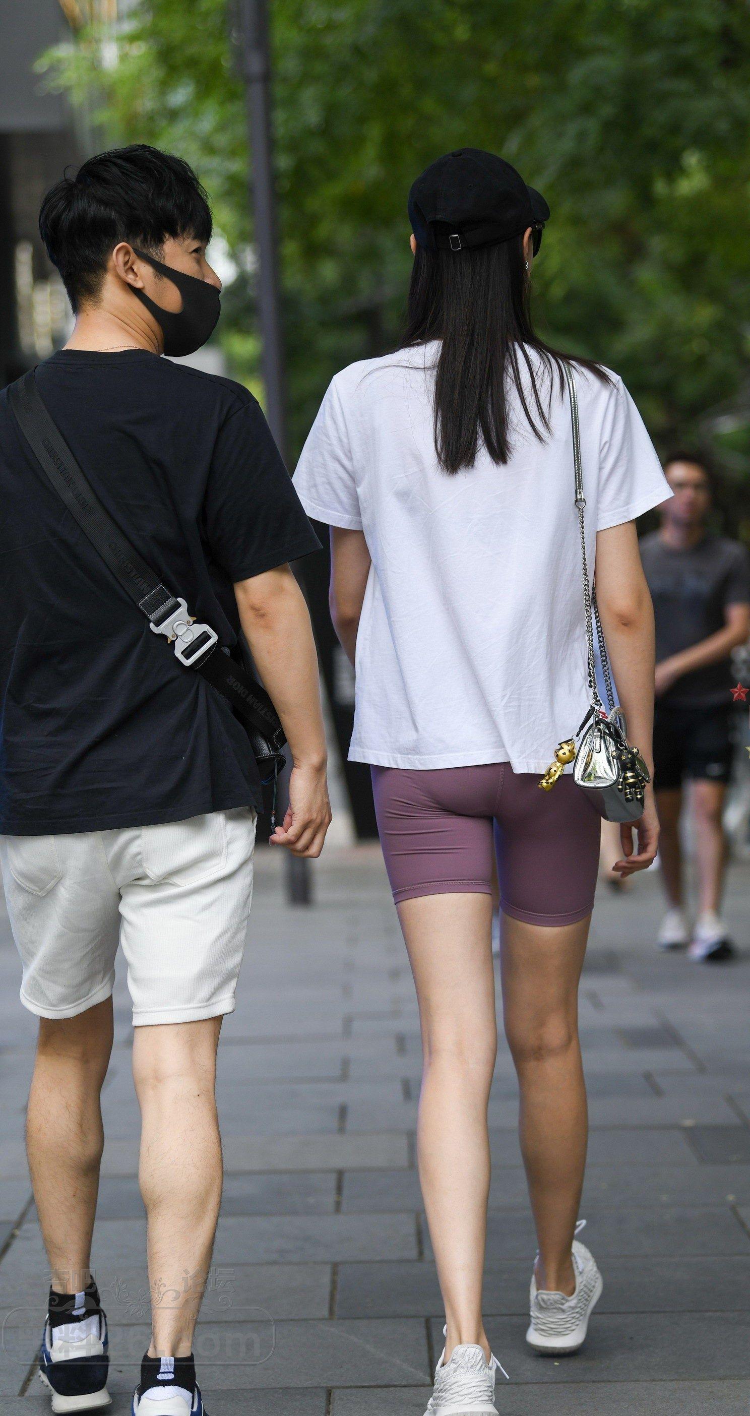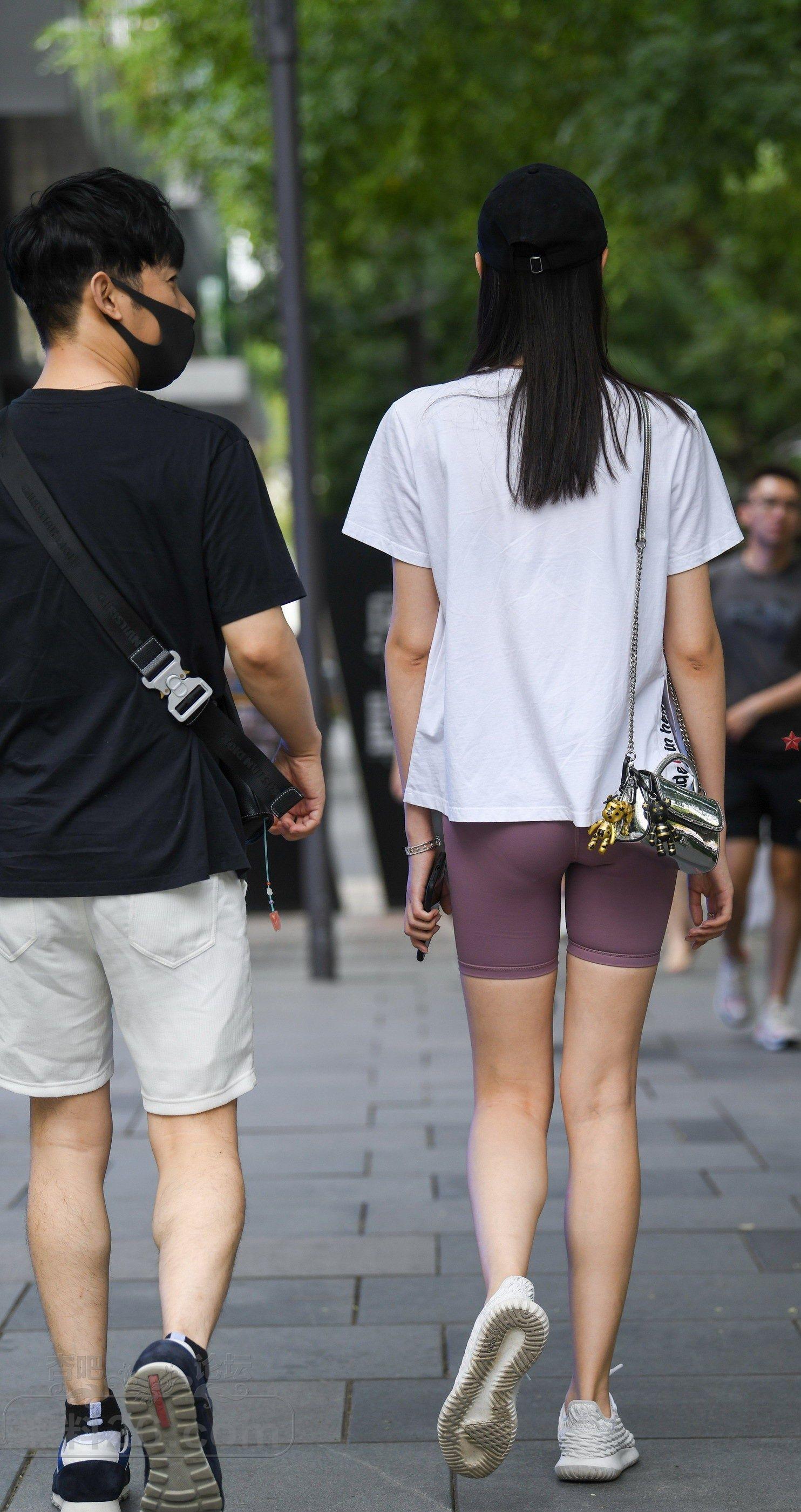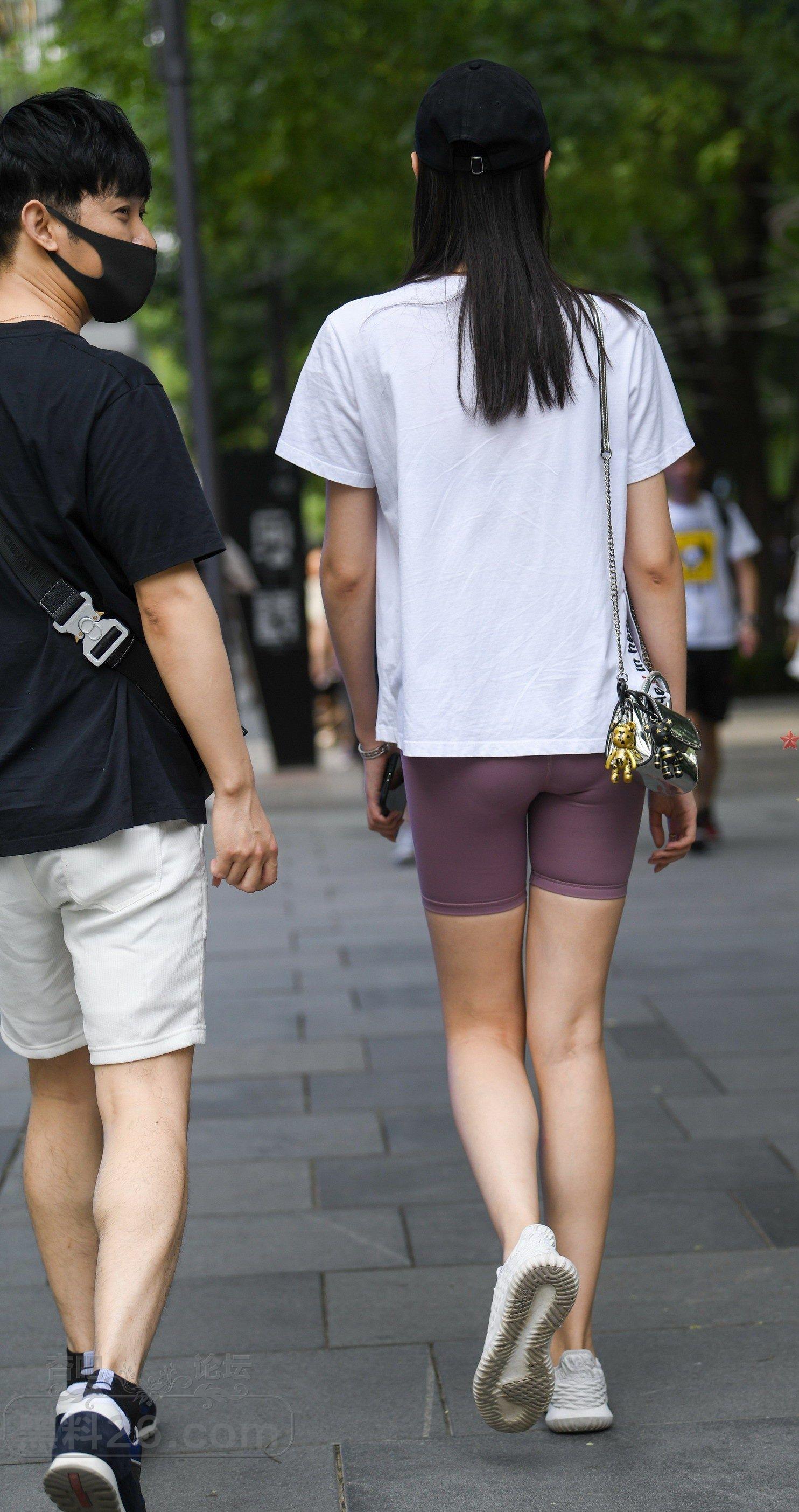 白色短袖瑜伽短裤黑色鸭舌帽美女和男友逛街【10P】
