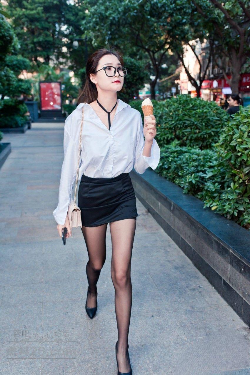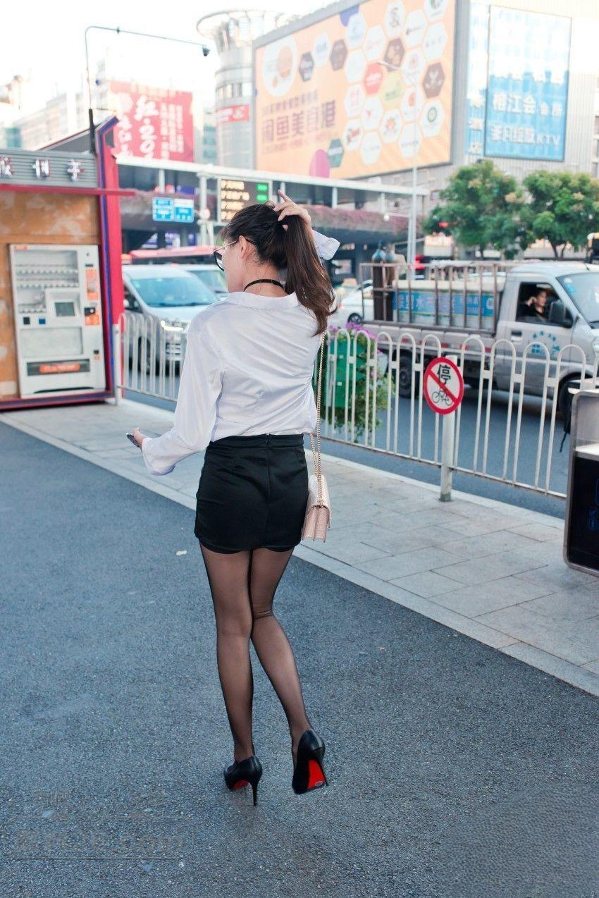 高挑御姐的黑丝美腿+黑色包臀裙,轻松驾驭街头焦点【16P】