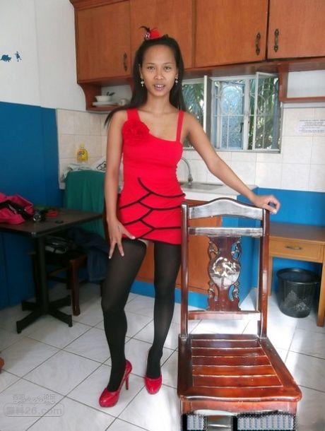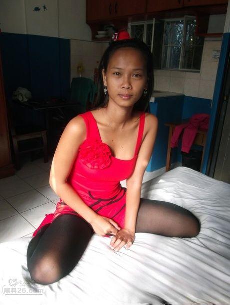 瘦弱的菲律宾女孩第一次穿着黑色尼龙丝袜当裸体模特【15P】
