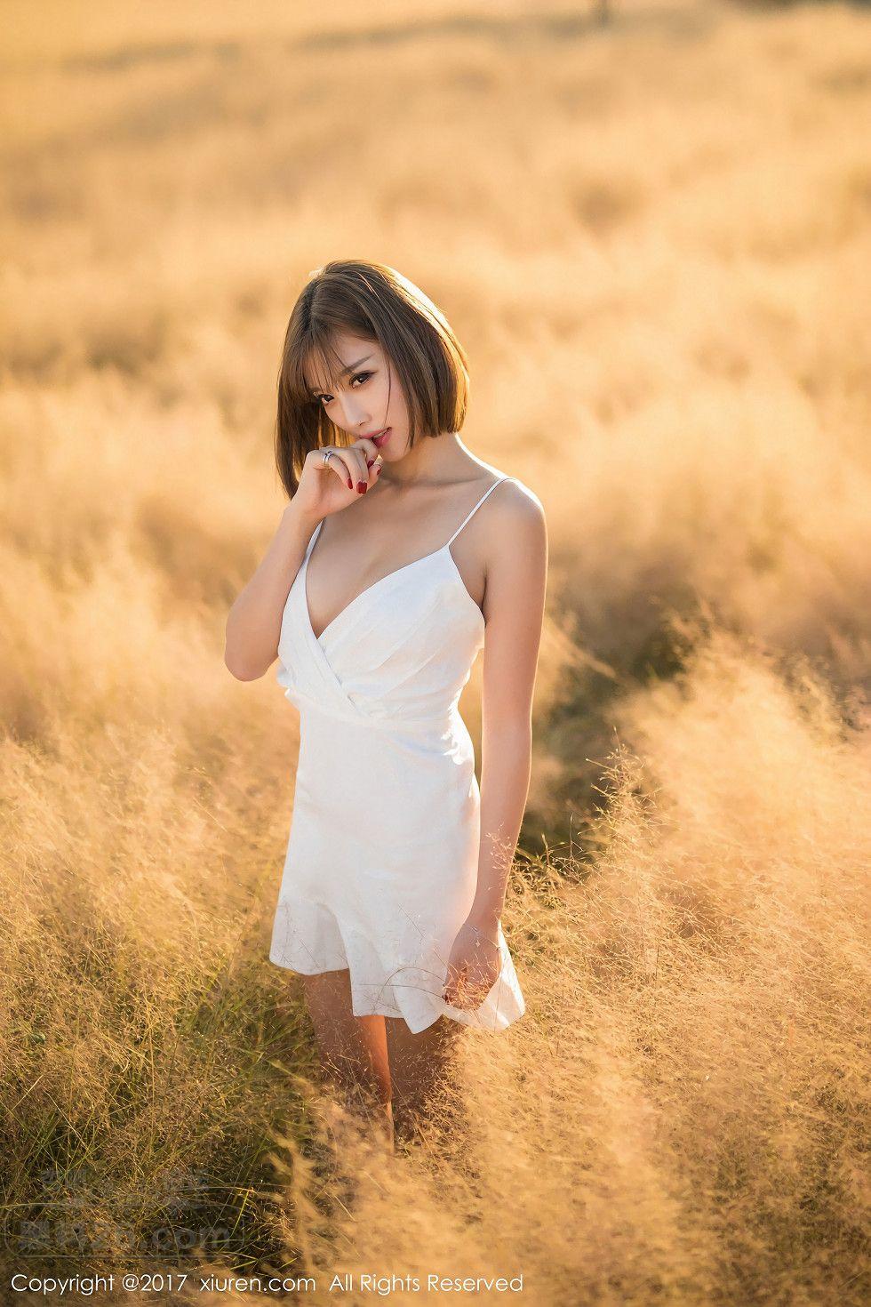 [美腿翘臀] 甜美女神杨晨晨户外花丛中白色蕾丝内衣秀完美身材写真【40P】 |