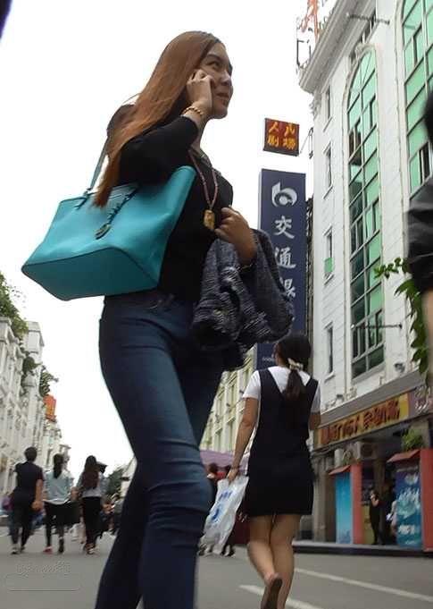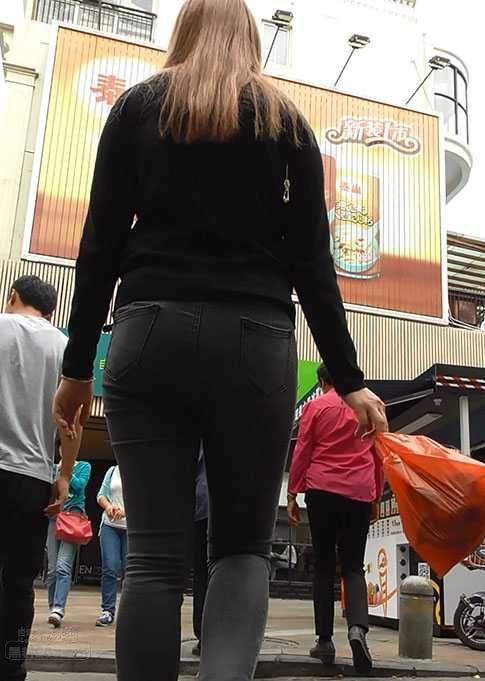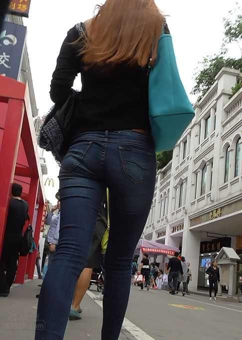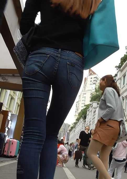 街拍黑色紧身牛仔裤,勾勒美女完美身材【33P】