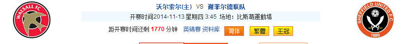 点燃体育激情-玩转比分竞猜—11月12日 沃尔索尔 VS 谢菲尔德联队 |