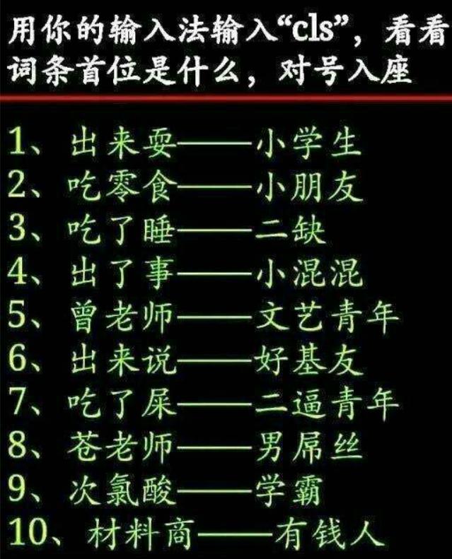 【金币帖】用你的输入法输入‘cls’,看看首位是什么词 |